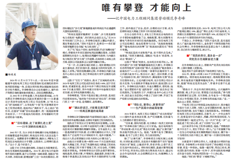 中國(guó)能源報(bào):唯有攀登 才能向上 ——記中國(guó)電力工程顧問集團(tuán)勞動(dòng)模范李奇峰